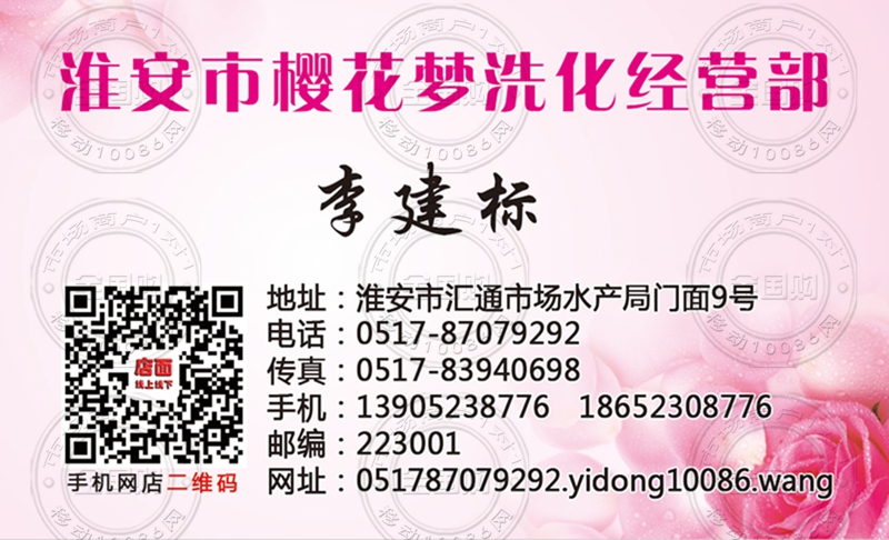 淮安市樱花梦洗化经营部名片-13905238776