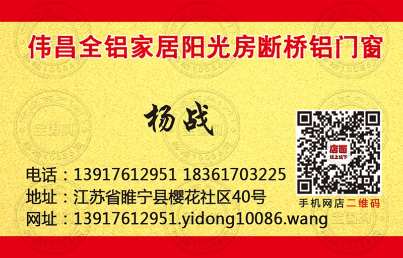 伟昌全铝家居阳光房断桥铝门窗名片-18361703225