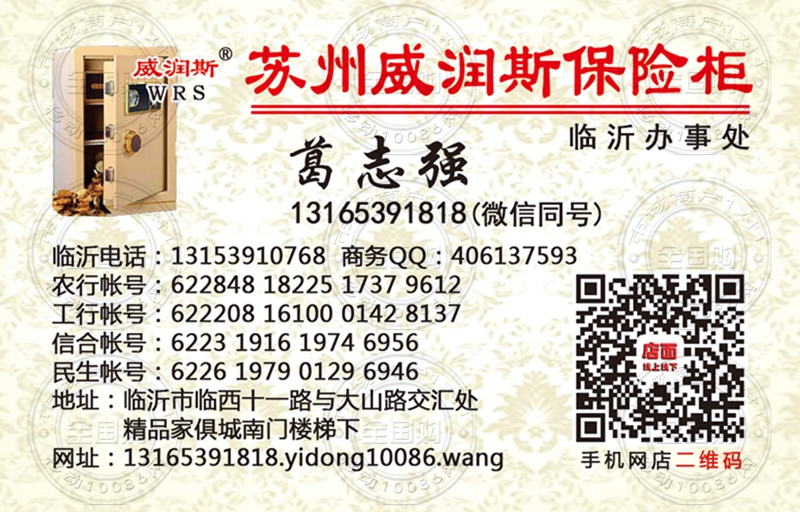苏州威润斯保险柜临沂办事处名片-13165391818