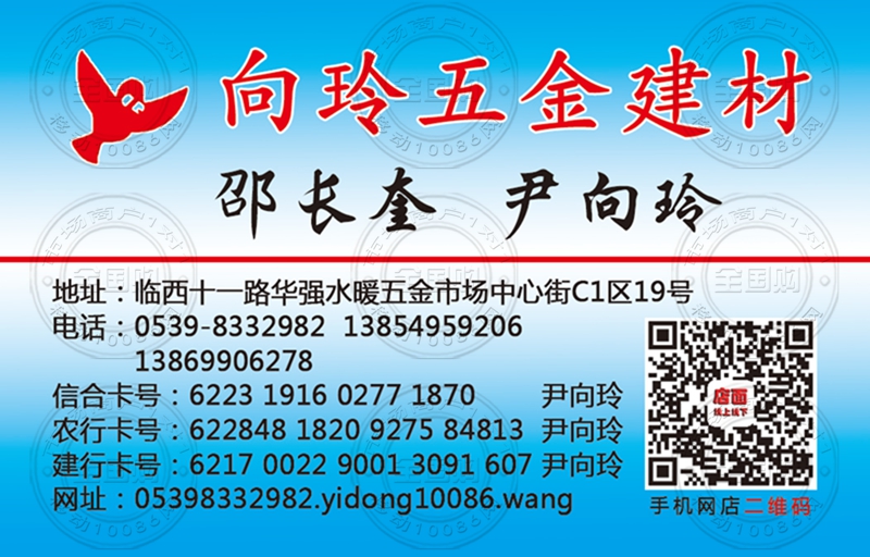 临沂向玲五金建材名片-13854959206