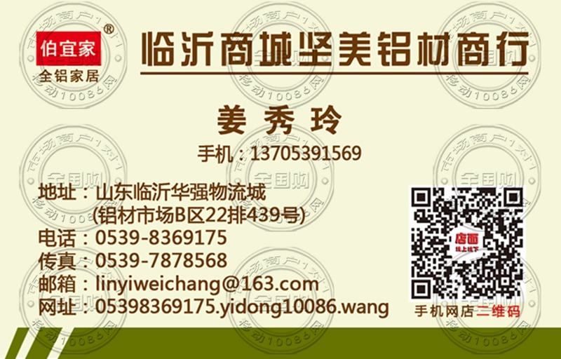 临沂商城坚美铝材商行名片-13705391569