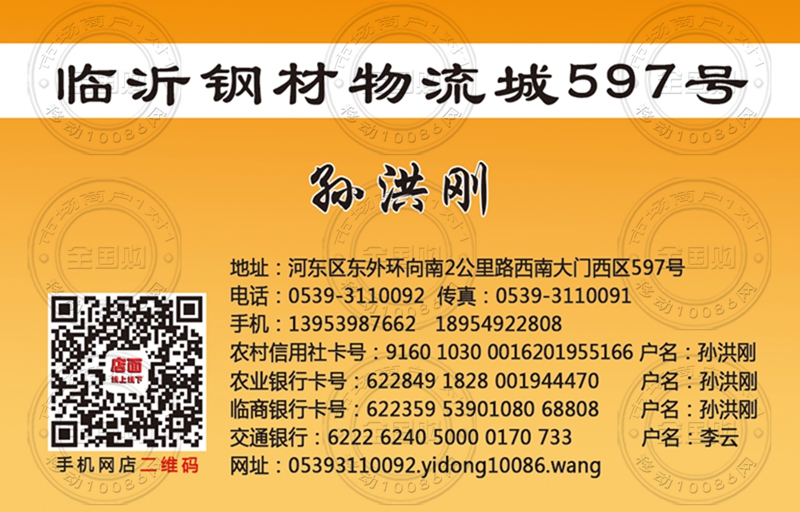 临沂钢材物流城【孙洪刚】名片-13953987662