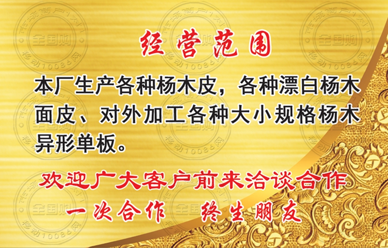 临沂金堂杨木异形面皮厂名片-13864946992