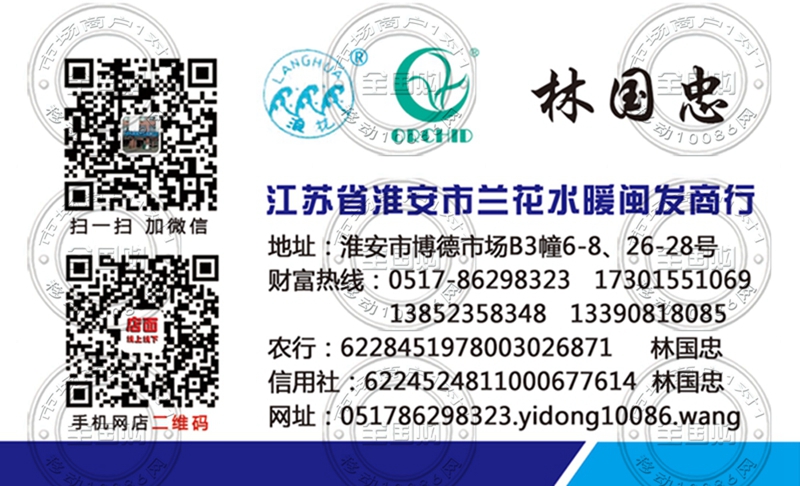 江苏省淮安市兰花水暖闽发商行名片-13390818085