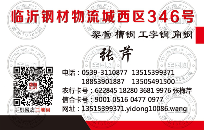 临沂钢材物流城西区【张芹】名片-18853901887
