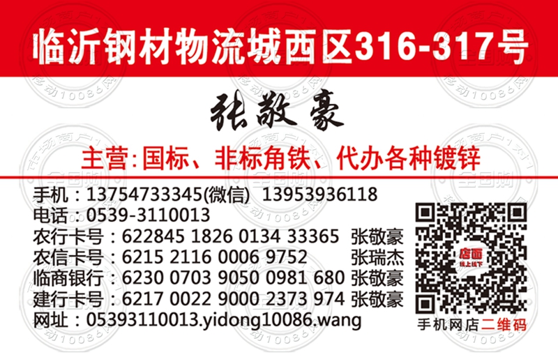 临沂钢材物流城【张敬豪】名片-13754733345