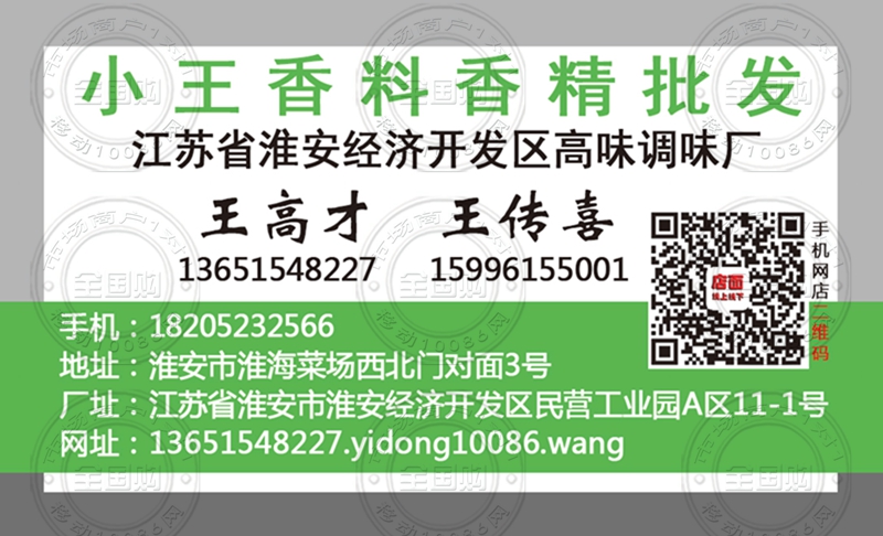 淮安小王香料香精批发名片-18205232566