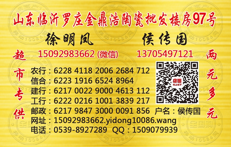山东临沂罗庄金鼎浩陶瓷批发名片-13705497121