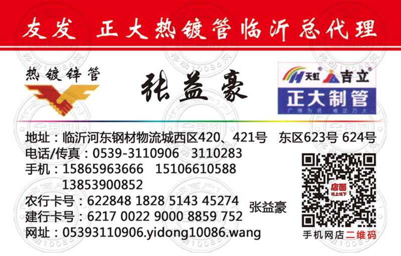 友发正大热镀管临沂总代理名片-15865963666