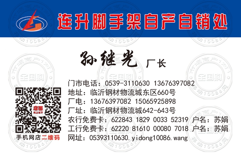 临沂连升脚手架自产自销处名片-13676397082