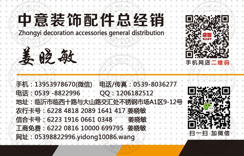 临沂中意装饰配件总经销名片-13953978670