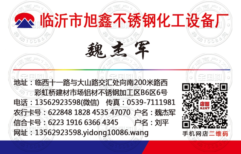 临沂市旭鑫不锈钢化工设备厂名片-13562923598