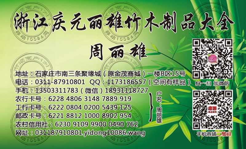 浙江庆元丽雄竹木制品大全名片-13503311783