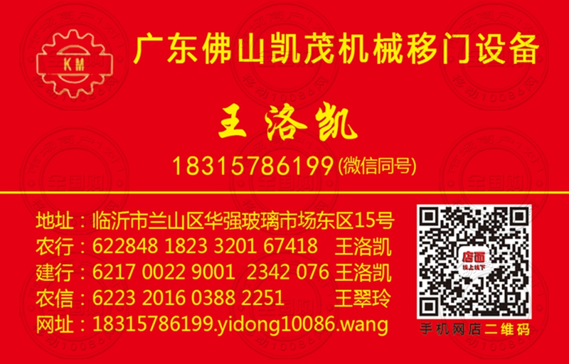 广东佛山凯茂机械移门设备名片-18315786199