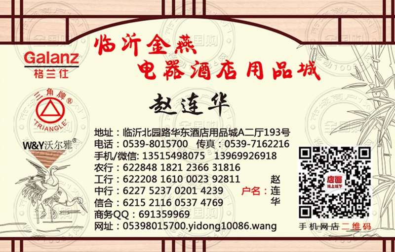 临沂金燕电器酒店用品城名片-13515498075