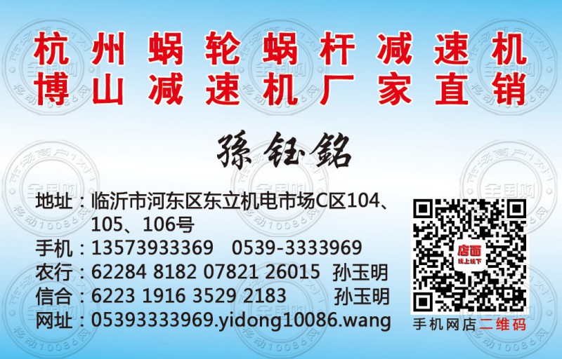 杭州蜗轮蜗杆减速机名片-13573933369