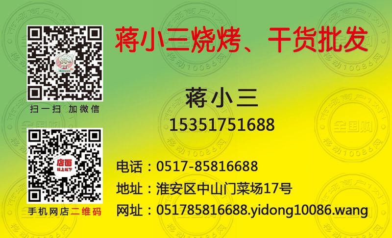 蒋小三烧烤、干货批发名片-15351751688