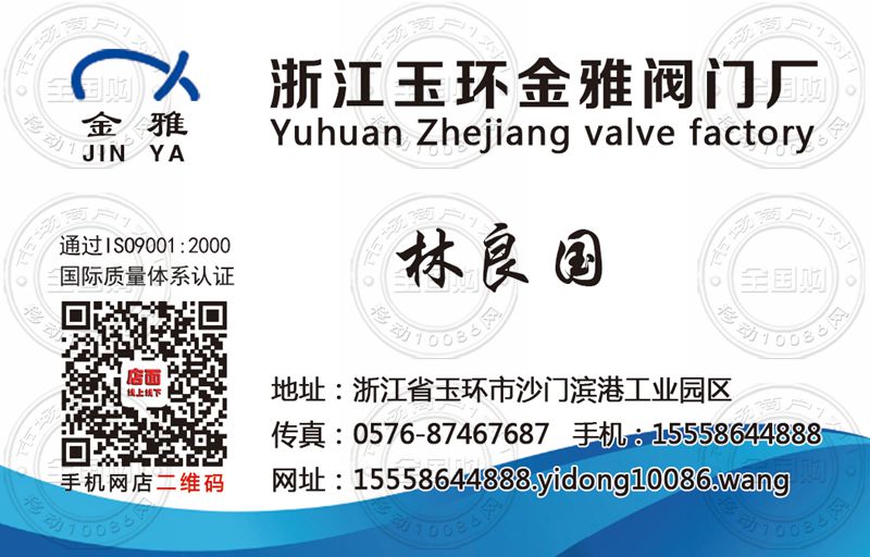浙江玉环金雅阀门厂名片-15558644888