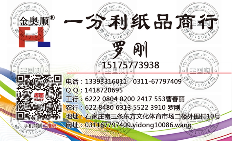 石家庄一分利纸品商行名片-15175773938