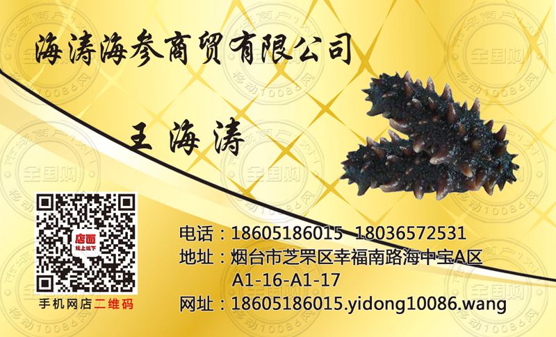 烟台海涛海参商贸有限公司名片-18605186015