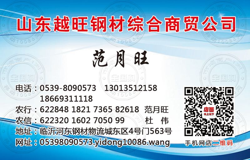 山东越旺钢材综合商贸公司名片-13013512158