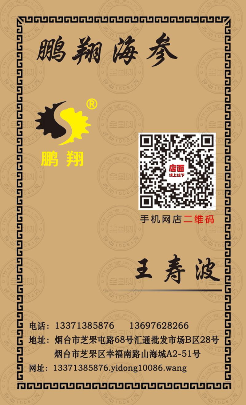 烟台鹏翔海参名片-13697628266