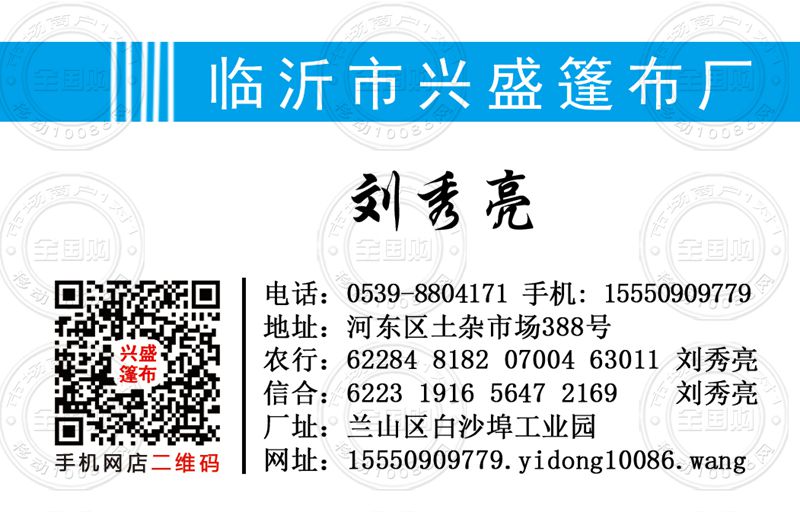 临沂市兴盛篷布厂名片-15092969626