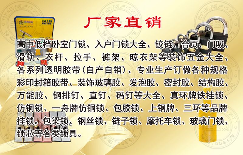 美家装饰 五金锁具 胶类大全名片-18369576616