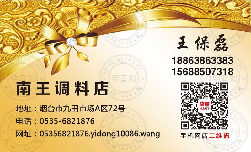 烟台南王调料店名片-18863863383