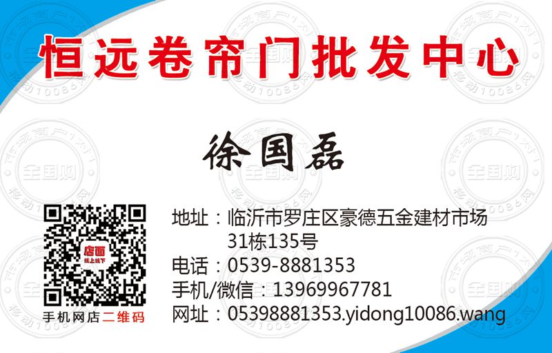 临沂恒远卷帘门批发中心名片-13969967781