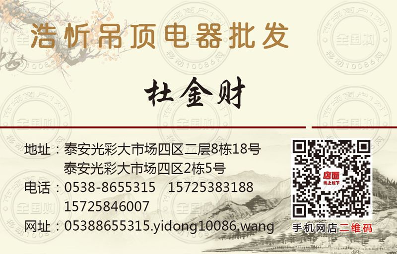 泰安浩忻吊顶电器批发名片-15725383188