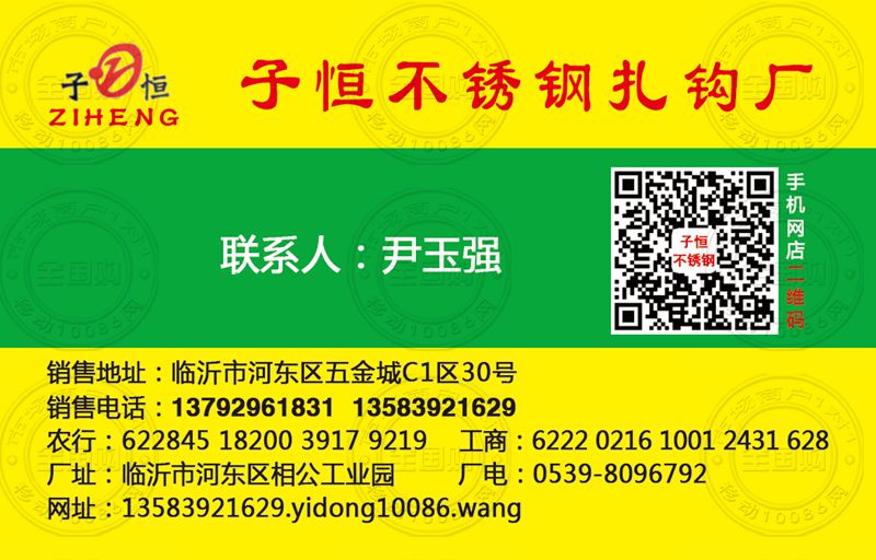 临沂子恒不锈钢钢筋钩名片-13792961831
