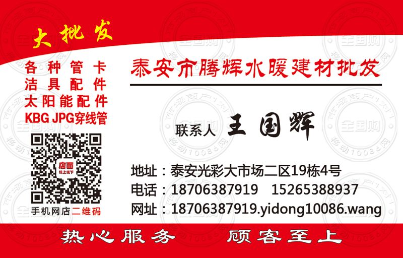泰安市腾辉水暖建材批发名片-15265388937