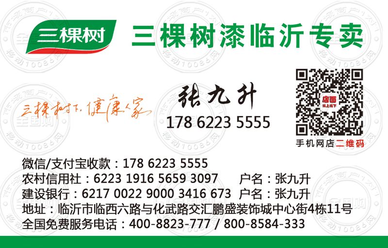 三棵树漆临沂专卖名片-17862235555
