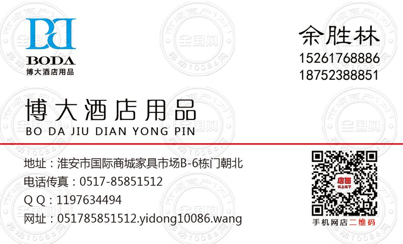淮安博大酒店用品名片-15261768886