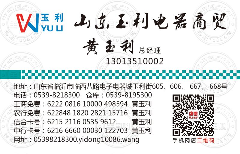 山东玉利电器商贸名片-13013510002