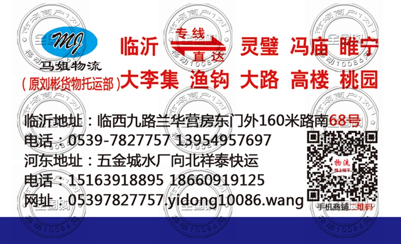 临沂马姐物流(原刘彬货物托运部)名片-13954957697