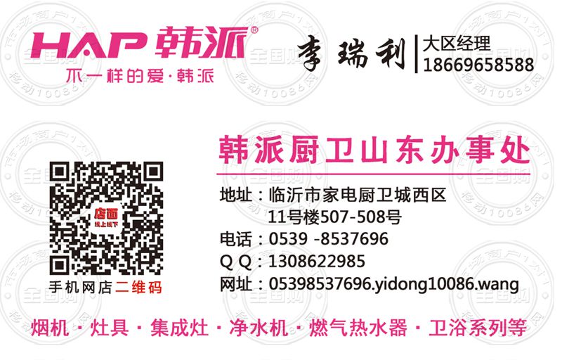 韩派厨卫山东办事处名片-18669658588