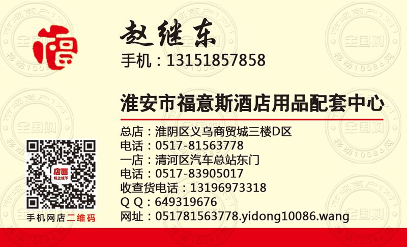 淮安市福意斯酒店用品配套中心名片-13151857858