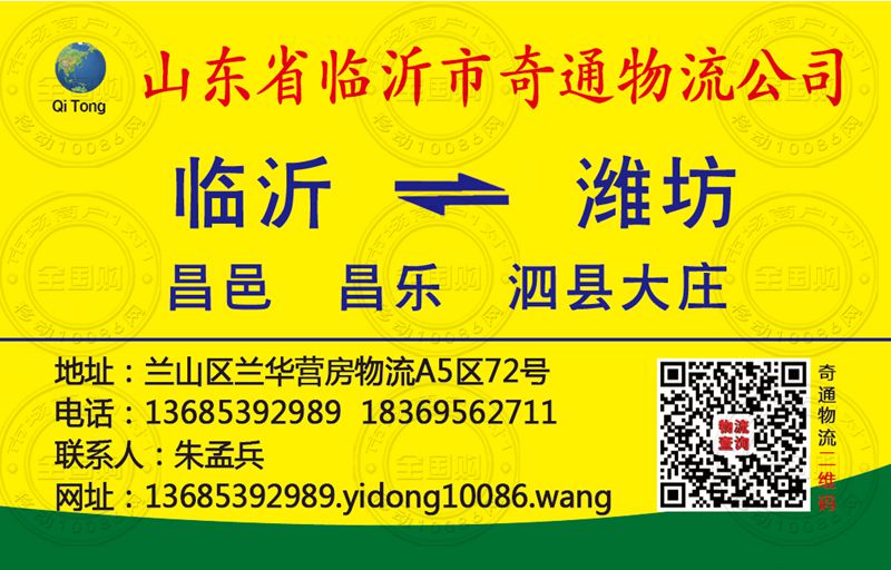 临沂市奇通物流公司名片-18369562711