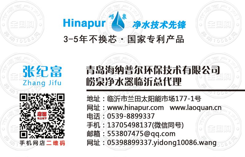 崂泉净水器临沂总代理名片-13705498137
