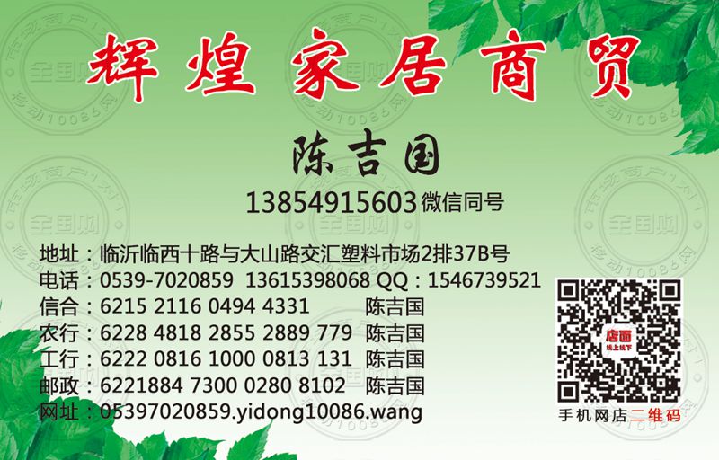 临沂辉煌家居商贸名片-13615398068