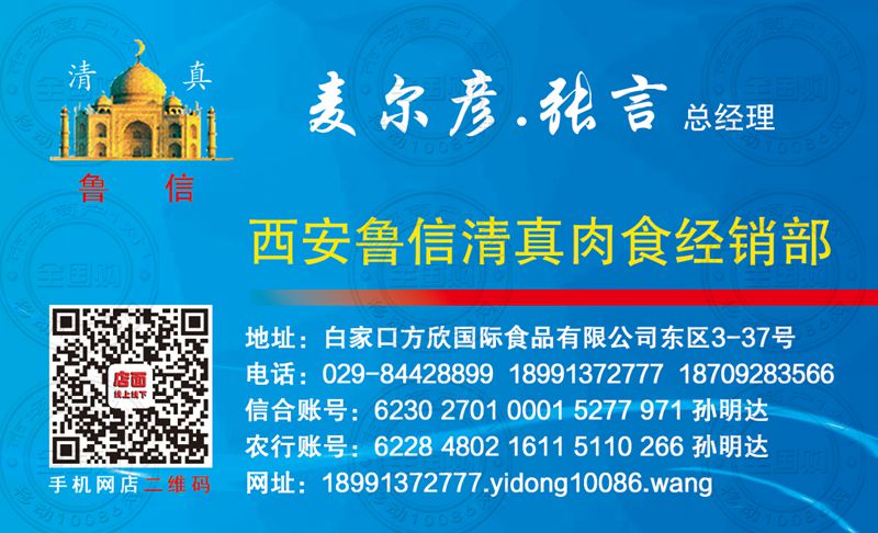 西安鲁信清真肉食经销部名片-18991372777
