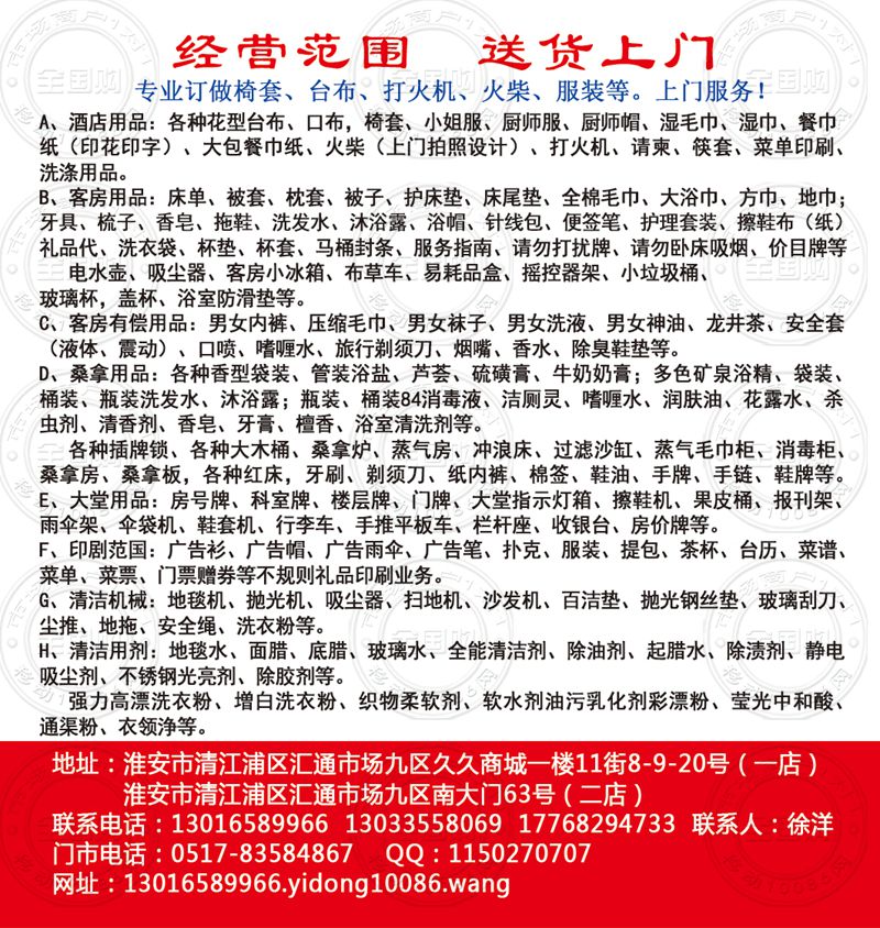 淮安酒店宾馆桑拿足疗KTV用品总汇名片-13033558069