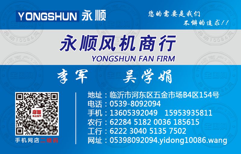 临沂永顺风机商行名片-13605392049