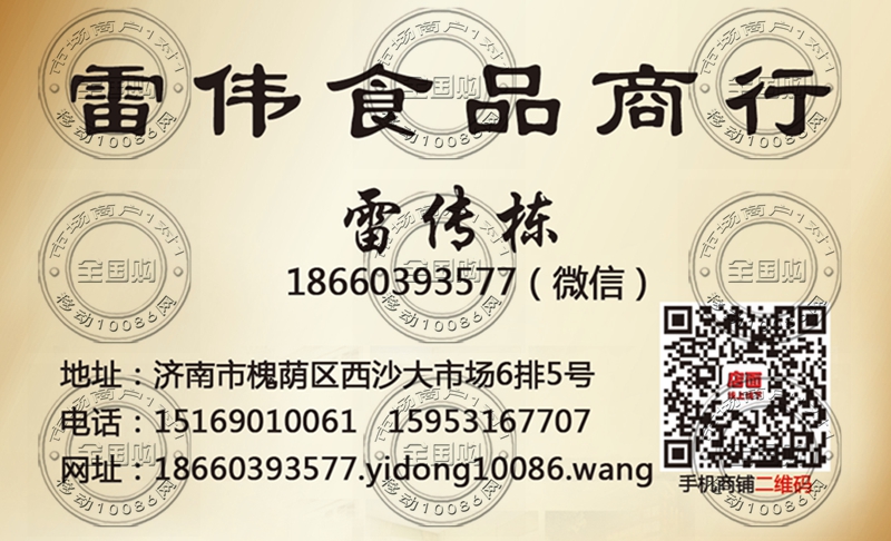 济南雷伟食品商行名片-15169010061