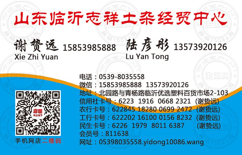 临沂志祥土杂经贸中心名片-15853985888