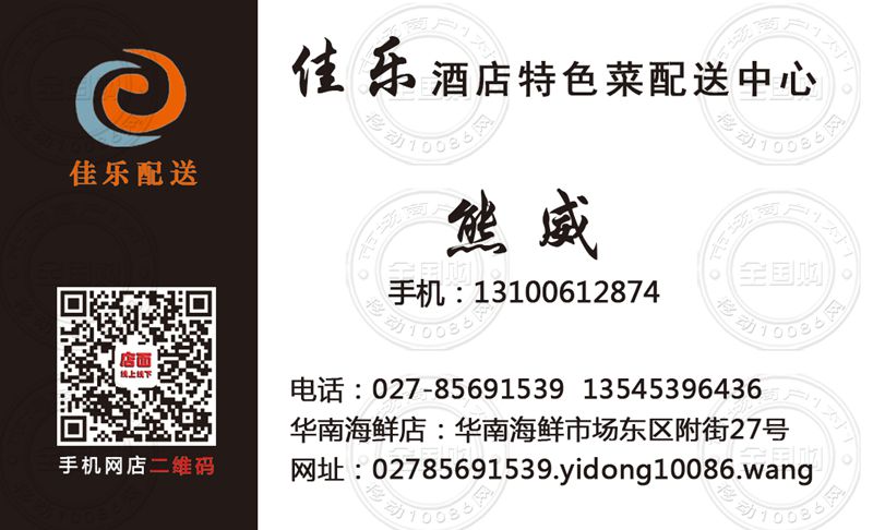 武汉佳乐酒店特色菜配送中心名片-13100612874