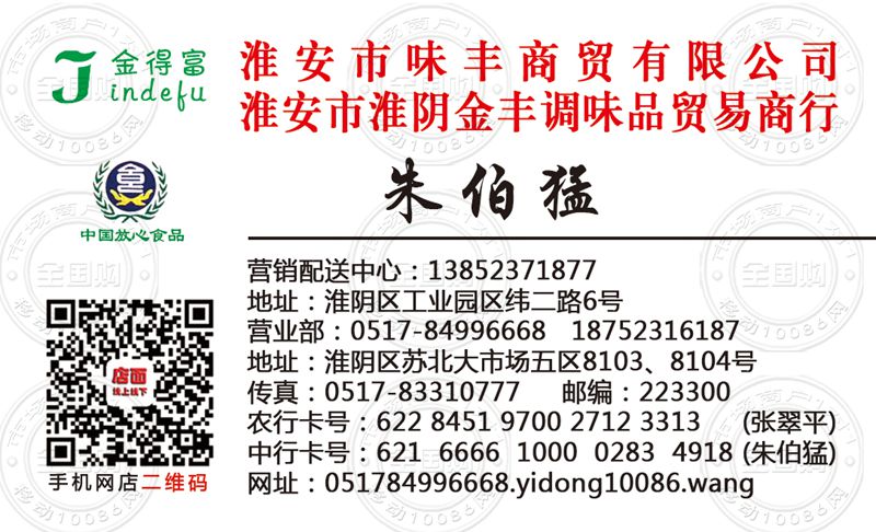 淮安市味丰商贸有限公司名片-13852371877