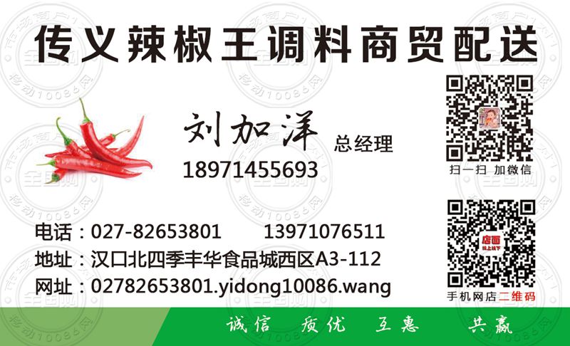 武汉传义辣椒王调料商贸配送名片-18971455693
